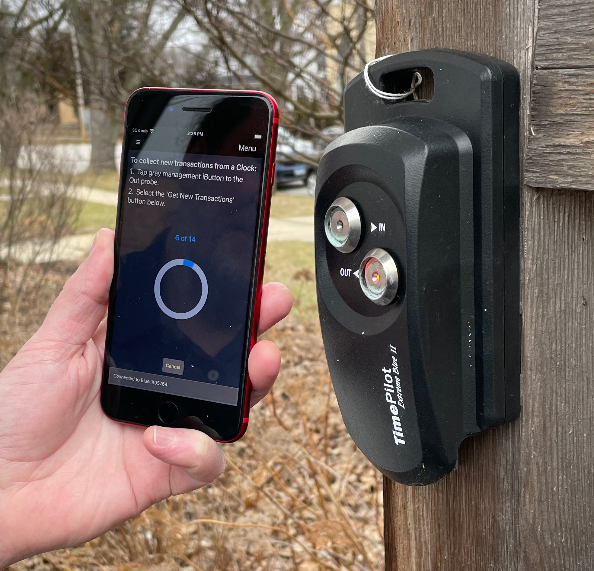 When it's time to download the data from the clock, the supervisor taps a special Management iButton to the clock to identify himself or herself as a supervisor, then taps an icon on their iPhone® or Android™ smartphone to download the data.