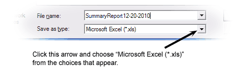 4. In the "Save File as type" area, click the dropdown arrow and choose "Microsoft Excel (*.xls).