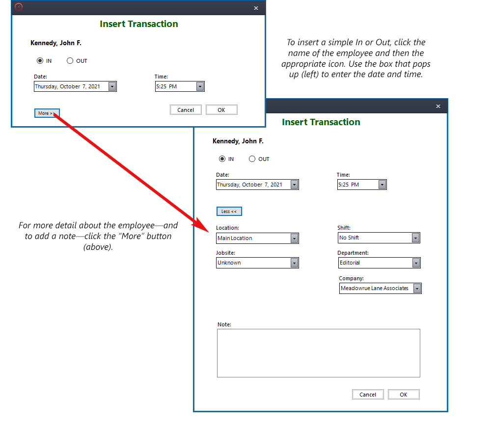 Insert a Clock-In Transaction: Allows you to quickly insert an "In" transaction for any employee.